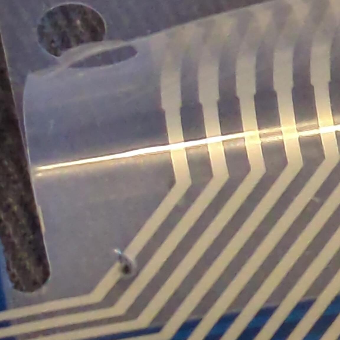 Here is the membrane sheet connected to the touchpad. Can you spot the connection break? Look closely – it’s darker than the rest of the wiring.