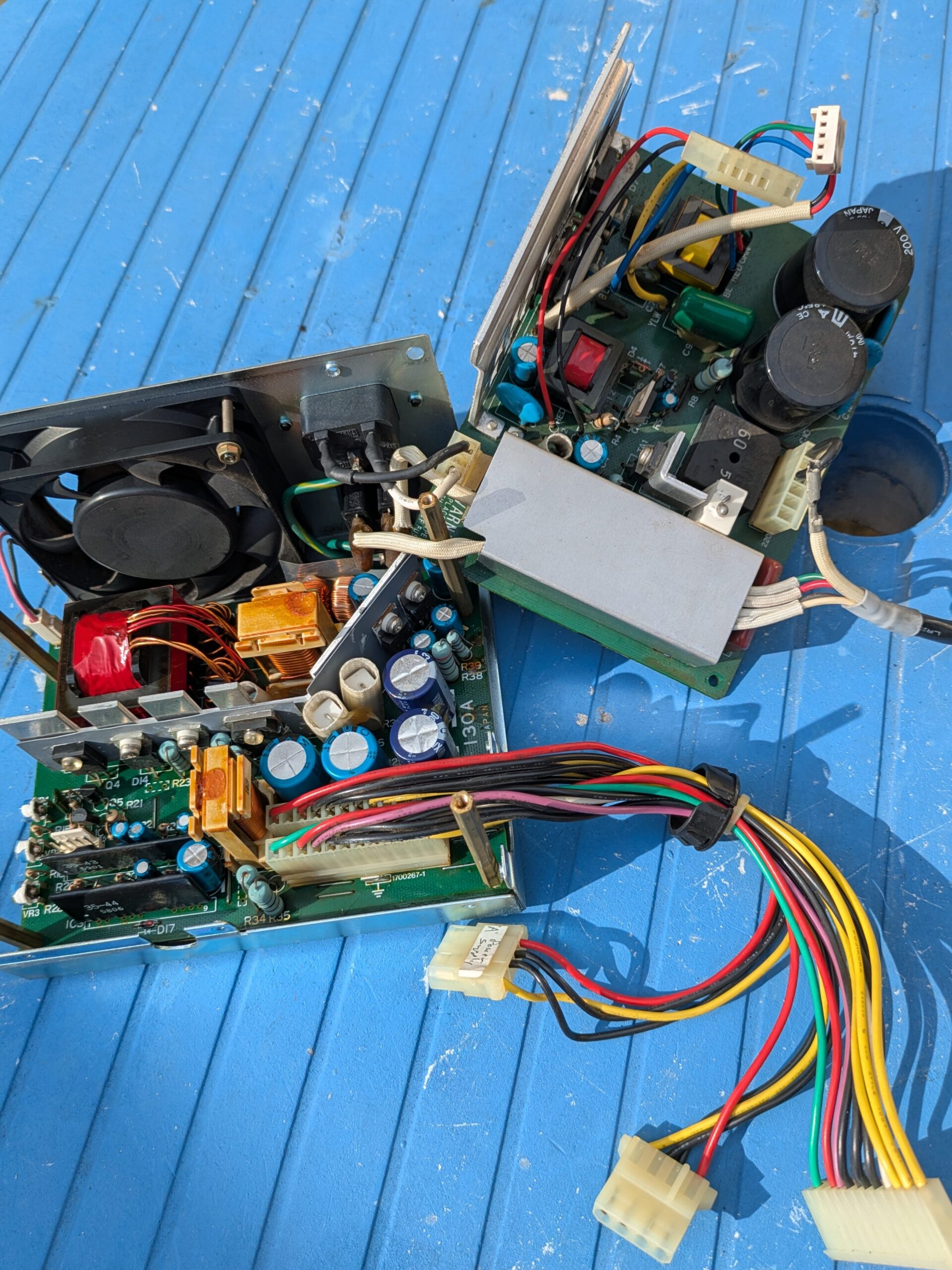 And… they don’t turn on. I guess that’s not terribly surprising. I get an inrush current from the PSU, but nothing happens when I flick the power switch. Nothing looked amiss on the inside of the PSU, at least.