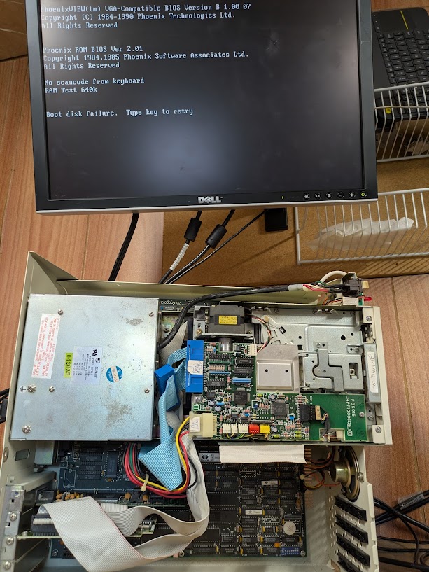 But before I go – witness the beauty of one fully-working Leading Edge Model D!! Since I lack an XT-compatible keyboard, I cannot control it, but it does boot and stays responsive!