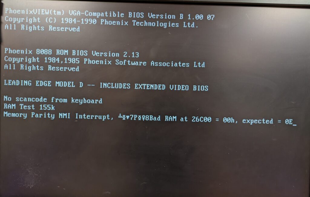 Fascinating! I hadn’t dealt with anything quite like this before. But indeed, of the several boots I had tried, several would throw memory parity errors. Below is one such that spoke the most of it.