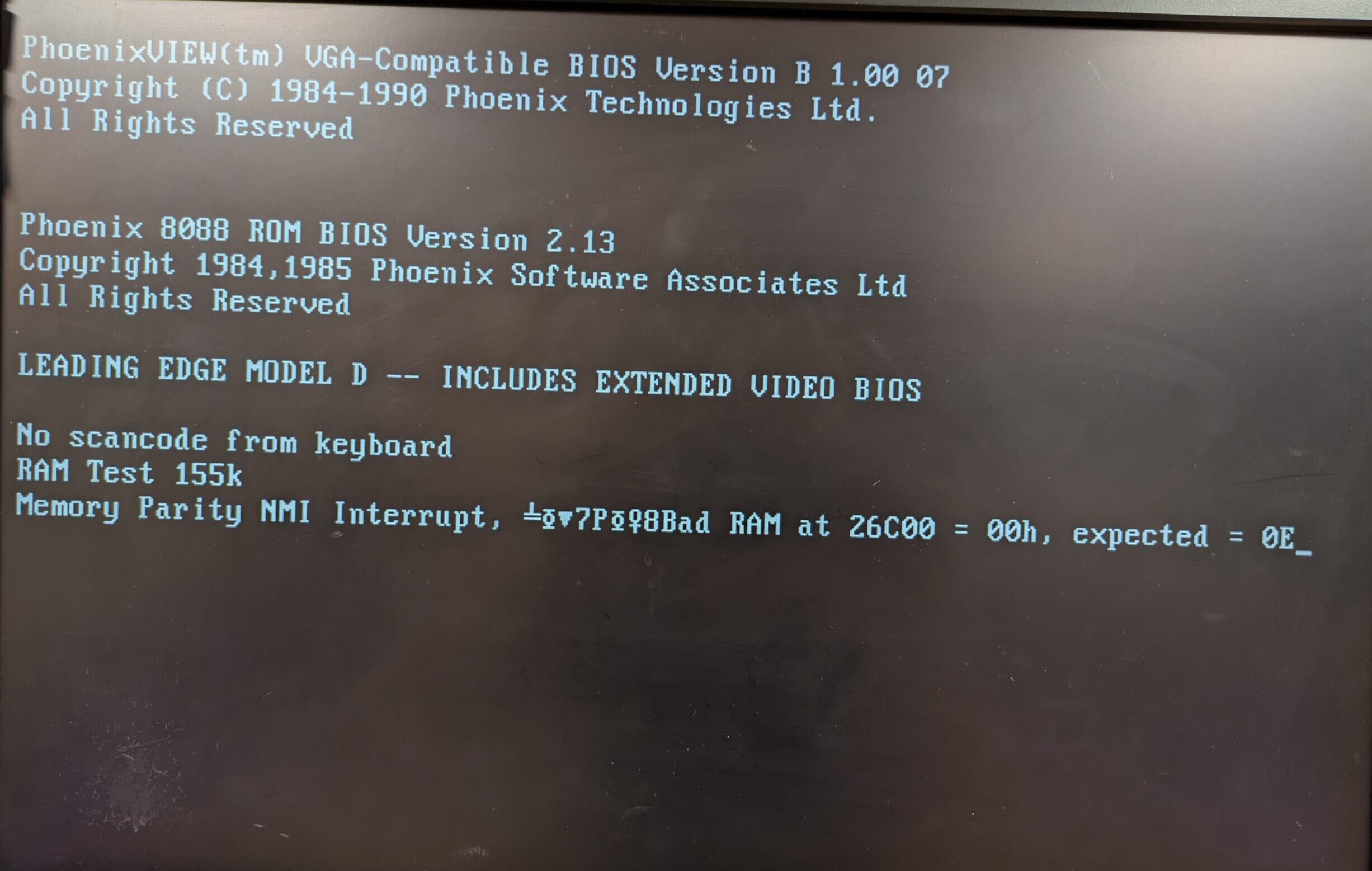I decided to really get down and dirty with this, and I recapped the other Leading Edge system’s board. Much to my amazement, after the recap, it works without any issue at all! No freezes, no RAM errors, no problems, even after several resets. What a pleasant surprise! This opens up many possibilities for further experimentation and troubleshooting.