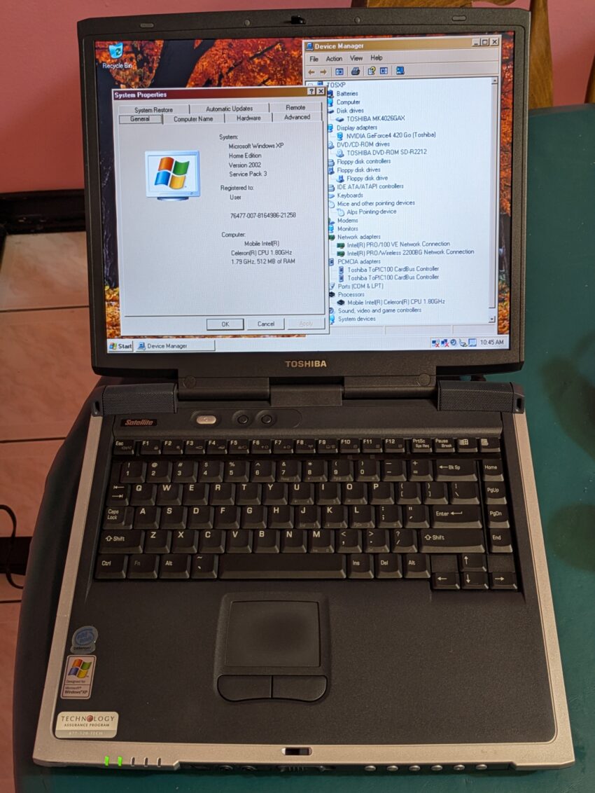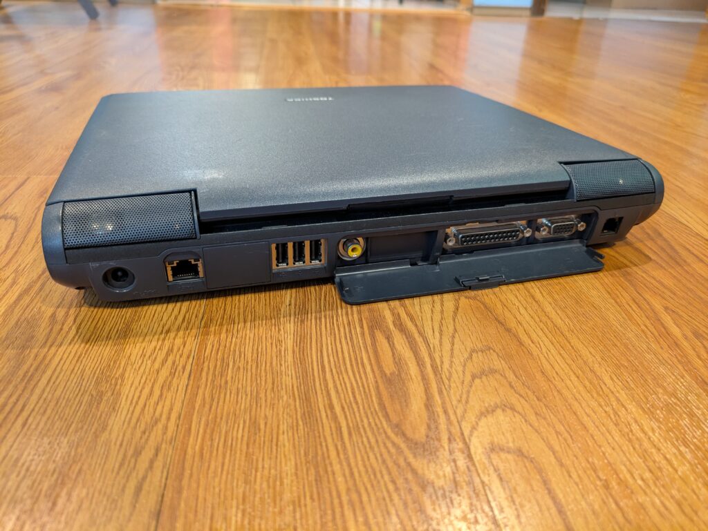 It’s fortunate also that unlike 2006-era Toshibas, the speakers on these don’t seem to be prone to totally trashing themselves. What’s interesting also about this laptop is the fact it has a dedicated composite output port – as far as I’ve seen, Toshiba liked doing that kind of thing around 2000.